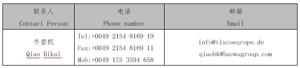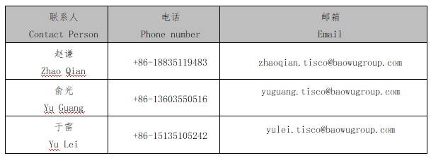 3.山西太钢不锈钢股份有限公司营销中心海外贸易部是本公司产品出口的唯一官方渠道,相关联系人信息如下: