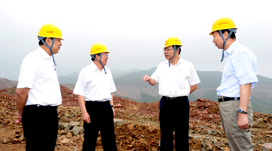 8月5日,山西省委常委、组织部长汤涛在山西省委组织部部务委员陈学东的陪同下,到太钢袁家村铁矿项目建设工地调研。太钢董事长李晓波、党委书记杨海贵、集团公司总经理高祥明陪同调研。
