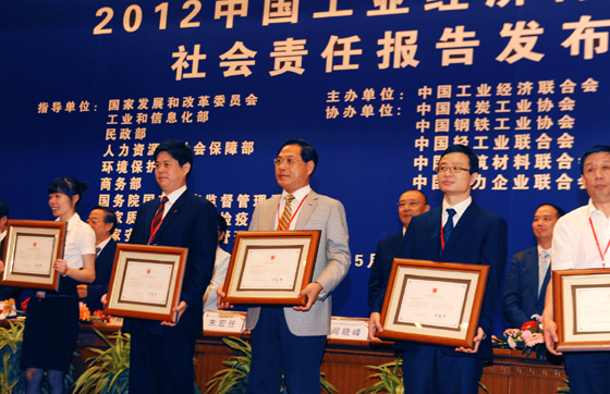 5月26日,“2012中国工业经济行业企业社会责任报告发布会”在人民大会堂举行。太钢面向社会发布了2011年度社会责任报告。全国政协经济委员会副主任、工业和信息化部原部长、中国工业经济联合会会长李毅中,国家安监总局副局长、国家煤矿安全监察局局长付建华,工业和信息化部党组成员、总工程师朱宏任,国务院国资委副秘书长阎晓峰等出席会议并为发布单位颁发了社会责任报告发布证书。太钢党委副书记王新平代表太钢领取社会责任报告发布证书。