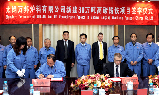 签字双方代表分别在仪式上发言,表达了珍惜这次合作机会,全力推进项目各项工作的愿望,并表示要通过努力,在2013年一季度全面完成项目建设任务,把30万吨铬铁生产线建设成世界一流的铬铁生产线。