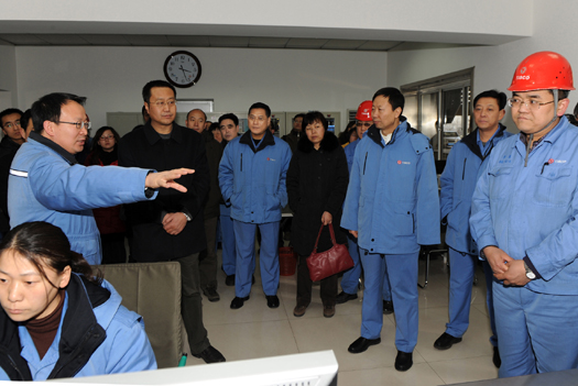 图为来宾们在450平方米烧结机烟气脱硫脱硝控制室参观。 王旭宏 摄