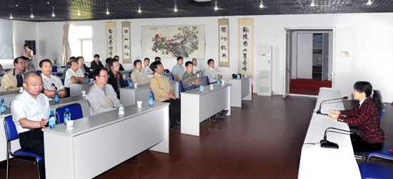 图为公司中心组成员在认真听取植树模范余晓兰“治理荒山,植树造林”事迹报告。 白治斌 摄