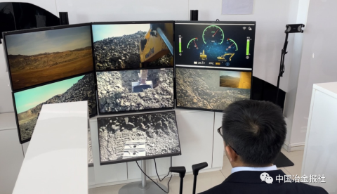 只见端坐在显示屏前的操作员,手握仪器把手,手起手落之间,画面中挖掘机的铁铲已挖起数吨矿石。